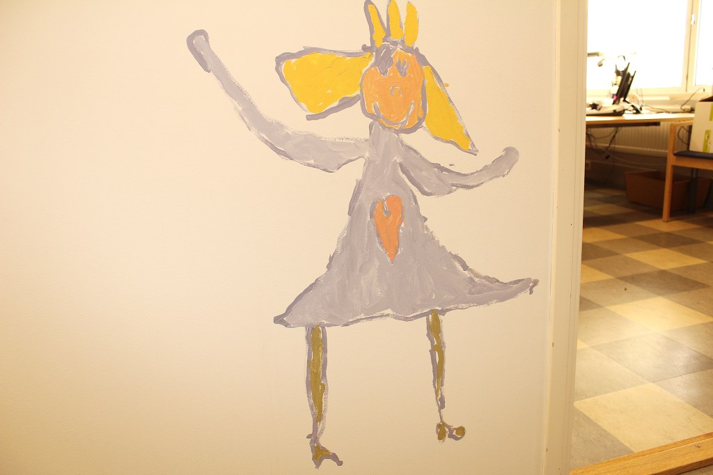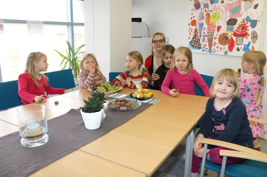 Leivonnaisia ja mehua saaneiden tyttöjen kera kunnanvirastolla vieraili kuvataitelija Pauliina Pesonen, joka on kahdeksan viikon ajan ollut avainroolissa Taiteista työtä ja kulttuurista hyvinvointia -varhaiskasvatushankkeessa.